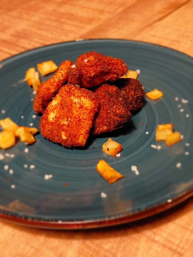 Breng de krokante aardappelnuggets op smaak met grof zeezout.