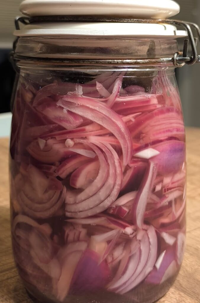 De ingelegde uien zijn ongeveer drie weken houdbaar.