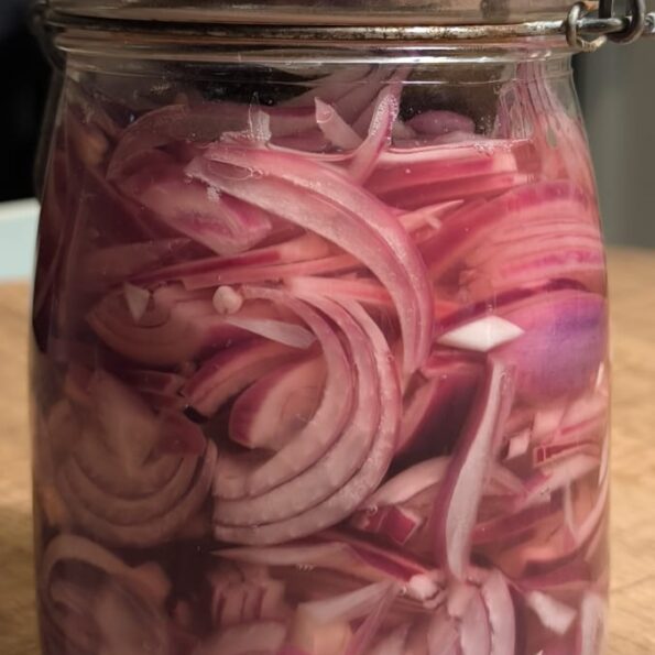 De ingelegde uien zijn ongeveer drie weken houdbaar.